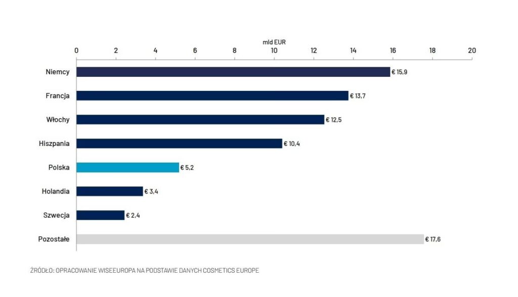 | Sprzedaż kosmetyków/urody w USA | ~94,36 mld USD | 2023 |