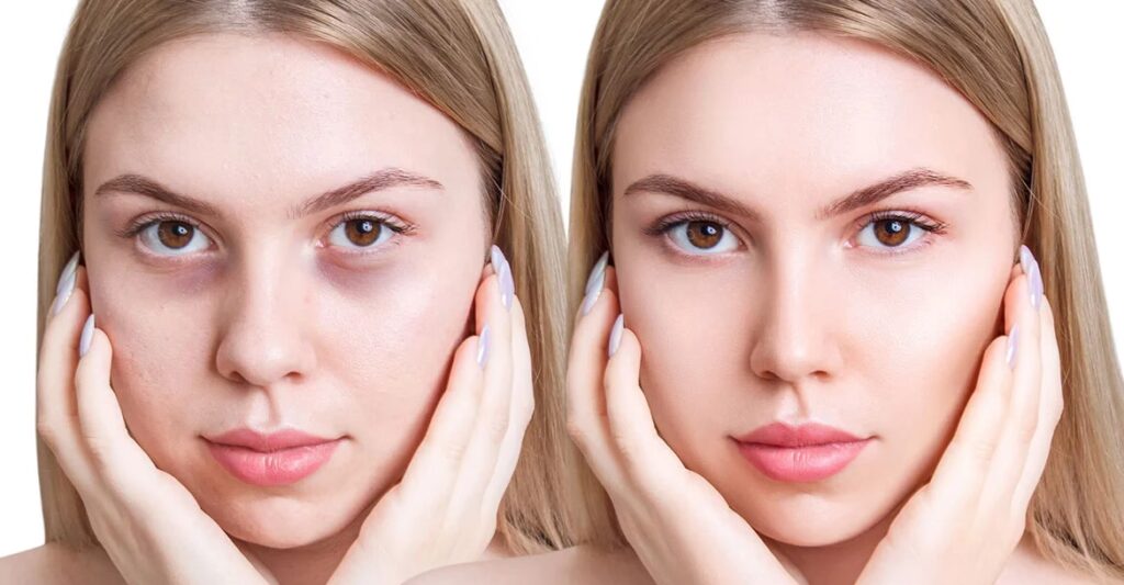 Korektor jest również niezbędny do zakrycia cieni pod oczami, które często towarzyszą problemom z przebarwieniami skóry. W tym celu możesz użyć korektora w kolorze zbliżonym do Twojego podkładu lub o pół tonu jaśniejszego, aby dodatkowo rozświetlić okolicę pod oczami. Aplikuj go w kształcie trójkąta z wierzchołkiem skierowanym w dół i delikatnie wklepuj do momentu uzyskania jednolitego efektu.