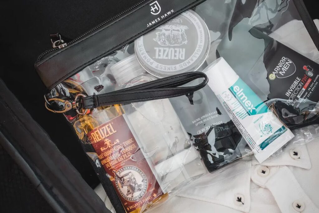 | Płyny kosmetyczne (kremy, balsamy, perfumy, tusze, podkłady) | Pojemniki max 100 ml, wszystkie w 1 przezroczystej torbie 1L. Trzeba wyjąć. | Spakuj strategicznie, aby mieć dostęp do potrzebnych produktów. |