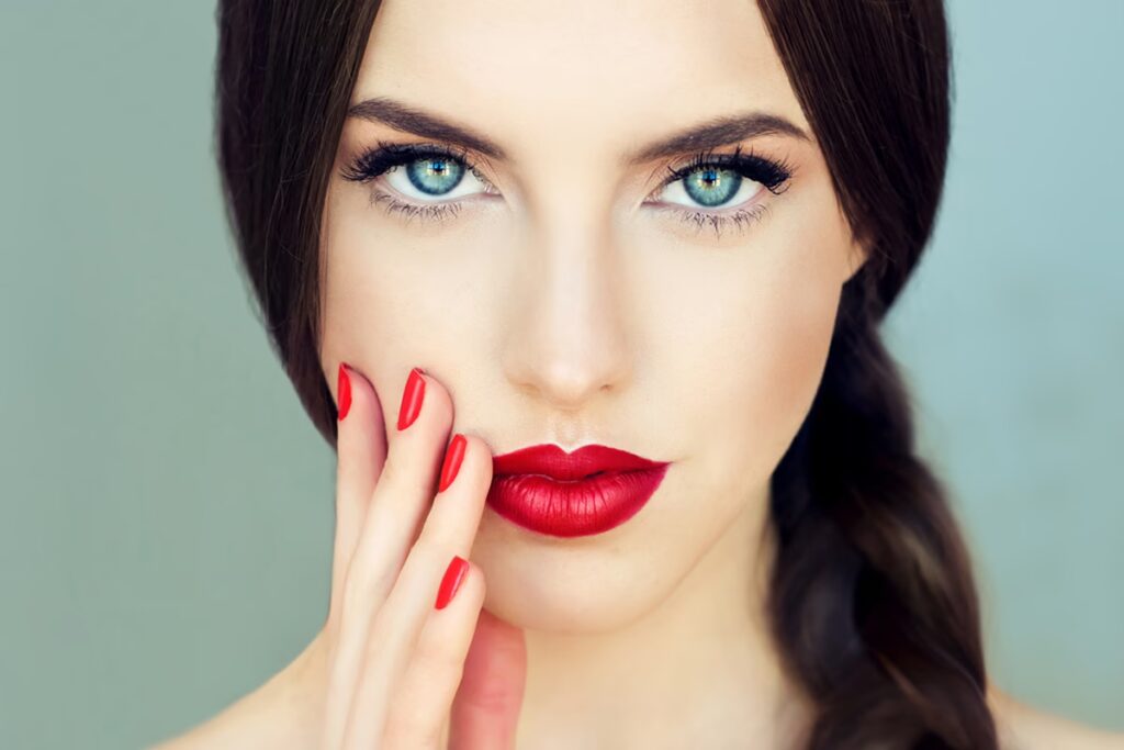 - Reszta makijażu: Czerwone usta wymagają odpowiedniego tła.