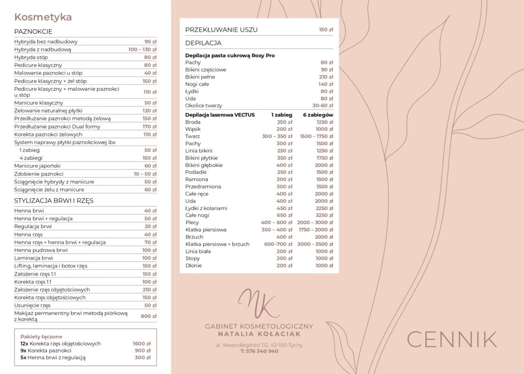| Zdobienia (za paznokieć / za całość) | 5 - 30+ / 20 - 100+ |