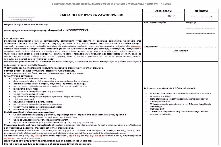 - Zasady Przeprowadzania Oceny Ryzyka na Stanowisku Pracy