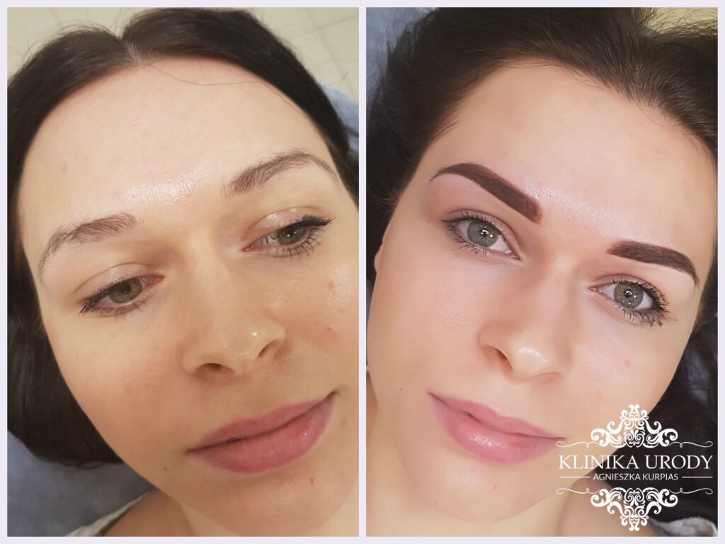 Po około 4-7 dniach pojawi się cienki "strupek" (mieszanina pigmentu i płynu surowiczego). Jest to normalny element procesu gojenia. Najważniejsza zasada: nie wolno go zdrapywać ani skubać! Samoczynne złuszczanie rozpocznie się po kolejnych kilku dniach. Pod strupkiem kolor może wydawać się bardzo blady lub wręcz niewidoczny – to również normalne. Kolor powraca i stabilizuje się w ciągu 1-2 dni po odpadnięciu strupka. Należy pamiętać, że normalna jest utrata części koloru po pierwszym zabiegu (do 30% na brwiach, nawet do 50% na ustach), dlatego konieczna jest wizyta dopigmentowująca (korekta) po około 6-8 tygodniach.