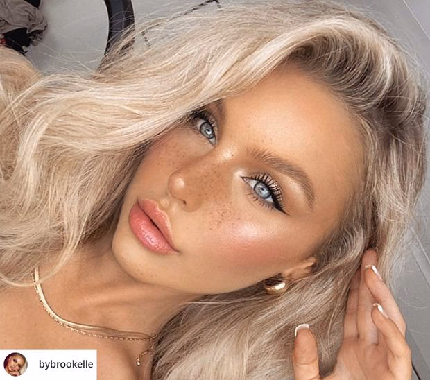 - Jeśli używasz rozświetlacza w kremie lub płynie, możesz go zaaplikować palcami, delikatnie wklepując produkt w wybrane miejsca (kości policzkowe, łuk kupidyna, kąciki oczu, pod łukiem brwiowym). Możesz też użyć lekko wilgotnej gąbeczki do makijażu.