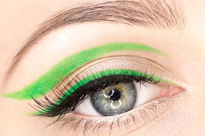 Kreska typu "Skrzydełko" (Winged Eyeliner): Podnieś swój look na wyższy poziom za pomocą kreski typu "skrzydełko". Neonowy kolor dodaje nowoczesnego akcentu do tego klasycznego stylu, sprawiając, że spojrzenie staje się bardziej kocie i dynamiczne.