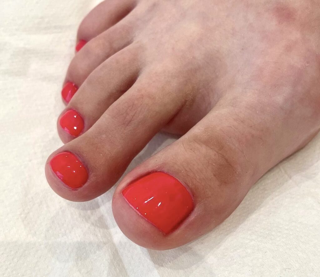 Pedicure hybrydowy: Klasyczny lub frezarkowy pedicure zakończony malowaniem paznokci lakierem hybrydowym, który jest trwalszy. Cena wyższa ze względu na koszt produktów i czas utwardzania.