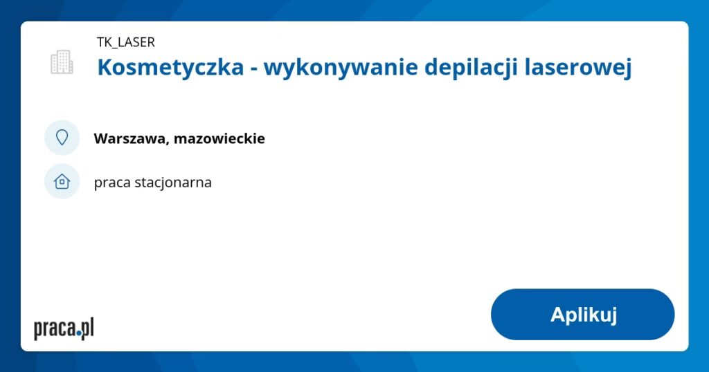 Doświadczona Specjalistka 3-5 lat Zaawansowane zabiegi na twarz, depilacja laserowa Salon w centrum miasta/galerii ok. 5000 - 6500 zł (często podstawa + prowizja)